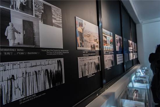 参与者的心电图更能揭示事件本身,它能记录那一刻参与者真切的心里变化,那个仪器全称叫“24小时心电变化观测仪”,比较先进。和手机接上可记录30秒,正好符合这个砸门的瞬间,砸门前,贴在参与者心脏处、腰部,每个人都做到一人一图。张树功是想通过这个科学的记录给观众一个可视性的、更真切的、直接的感受,这也是别人没做过的。