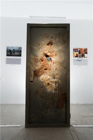 通过这14次“破门”,使张树功的作品开始迈入社会底层,触及到了社会的热点和焦点问题。通过砸门痕迹,运输票单,砸门人的心电图,门的包装木箱等来呈现。最后展览不是单一的绘画作品,还包括声音等,全方位、全因素综合的方式去呈现。张树功实现了从架上绘画到行为艺术又一次穿越。