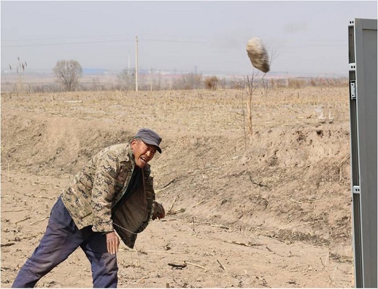 2015年3月26日张树功从北京出发,途经太原、鄂尔多斯、乌海、宁夏青铜峡、乌鲁木齐、和田、拉萨、汶川、绵阳、深圳、厦门、南京、淄博、北京,在全国的这14座城市中,他分别发动了慰安妇之子、空城售楼者、重污染区居民、产妇、绝症患者、维族人和汉族人、挖玉者、宗教信仰者、灾区受害者、留守儿童、失足妇女、台海问题当事人、南京大屠杀受害者、国民党抗战老兵、雾霾和交通受害者,并由这些当事人举起“板砖”,再次砸向这扇铁门。14座城市,跨越了不同的民族、不同的语言、不同的心理、不同的习俗。但其共同性也是明确的,即抒发大家内心的喜、怒、哀、悲等情感,将当下民生生活中的迷惘、不安和失衡彰显无遗。使作品真正跨入了社会底层,触及到了社会的热点和焦点问题。使之成了张树功作品直入社会问题的批判性,警示性所在。当然作品自始至终还是艺术家对社会的人文关怀,是一条无形的线。