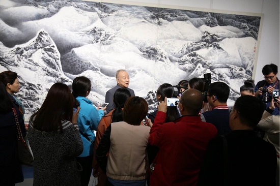 在开幕仪式之后,由评论家、策展人、中国美术家协会策展委员会副主任皮道坚先生主持,刘国松先生进行演讲 《我的创作理念与实践》 ,讲述他一生创作的过程与心得,让观众了解他为什么要“革中锋的命”、“革笔的命”?为什么提出“画室是实验室”、“先求异,再求好”、“为艺如同摩天大楼”等理论。皮道坚先生对演讲进行了总结:“刘国松先生对民族的自豪感、对民族文化的自信心以及对民族文化的归宿感,贯穿于他在60多年的创作过程中。刘国松先生是一位从始至终充满了实验探索精神的艺术家,有着非常强烈的创新欲望。他在艺术创作中一路走来,都是秉持着为了表达内心的感动的艺术观。刘国松先生更是一位睿智的艺术家,用媒介思考、充满了智慧。”
