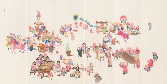 吉祥百子图 320×180cm 纸本彩墨 2016