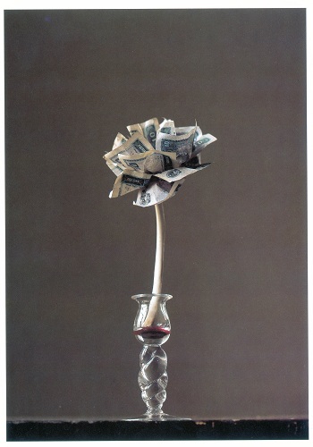 《一个童话》 12×12×36cm 人民币、肋骨、血、玻璃 1994/2007 (图片由尤伦斯当代艺术中心提供)