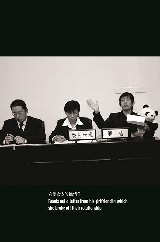 2000年之后,赵半狄的创作进一步转向行为表演与社会介入。录像作品《熊猫人失恋的故事》( 2004年)记录了赵半狄将两家使用其广告摄影作品而未注明版权信息的媒体告上法庭,通过在法庭现场“插播”虚构女友的信件而扰乱了秩序,最终获得胜诉。这次行为不仅意味着一种戏仿,亦批判了现存的制度、法律与现实,在既定的社会机制中为艺术开辟了一个空间。2005年,作为牵动全国人心的“北京奥运会”预热,他在瑞士首都伯尔尼举办了一场虚构的私人奥运会“开幕式”,以奇特的方式将现实中的演员与人群纳入这次行为。基于一系列广泛的社会角色,大获成功的表演项目《熊猫时装秀》(2007 年/2009年)则以“时装”的形式塑造了个熊猫“造型”,着眼于“改革开放”以来商业意识形态对中国社会文化的全面冲击。在此,时尚勾勒出一幅光怪陆离的新世相图。此后,赵半狄发起的介入性项目《熊猫慰问》(2007 年)则致力于让艺术真正成为一种解放性、批判性的力量,在固化的社会系统之中打开一个微小而意义深远的“缺口”。在依据“用创造力换一座孤老院”拍摄的电影《让熊猫飞》(2013 年)中,赵半狄与其他参与者为实现同一个目的而共同努力,通过并置实际发生的事件与虚构的想象而让“真实”变得更为扑朔迷离。2013年7月4日,在中国当代艺术界被称为“熊猫人”的赵半狄,以一张刊登在《新京报•新艺术》月刊封面上的《赵半狄宣告终结“熊猫时代”》的摄影创作,摘下与自己绑定了十余年的“熊猫”标签,为这一创作命题收尾。在展览现场,尤伦斯展厅还特意开辟了一个“电影院”,专门播放《让熊猫飞》。这部被豆瓣评为2.0分的电影,在这个展厅里,或许会给人不一样的感受。