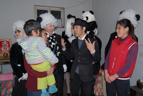 《熊猫慰问-农民之家》(静帧)2分25秒 影像 2007 (图片由尤伦斯当代艺术中心提供)