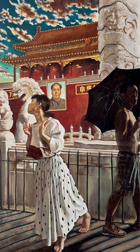 在展览的最后一部分是赵半狄在与“熊猫”结缘之前及告别之后的绘画创作。《蝴蝶》(1990年)、《远方来信》(1988年)、《涂口红的女孩》(1987年)等这些早期作品将他个体经验与历史元素独特而鲜活地结合起来,构图严谨、笔法克制,以叙事性的日常场景刻画具体时空中普通人的存在与精神状态。而《中国Party》与《我的花园》是赵半狄最近两年的新作,不管是表现身临其中的《中国Party》,还是保持距离远观的《我的花园》,都表现着赵半狄积极介入与冷静旁观的拥抱社会的心态。