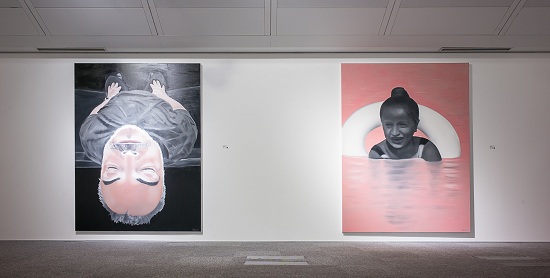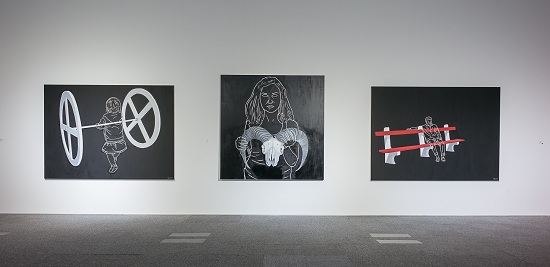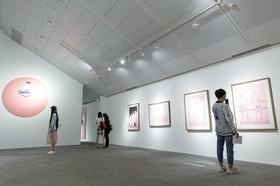 此次展览拉兹罗·费赫尔展出的作品分为了两个小空间,一个是以黑色做底的透明人的作品,一个是以粉色为底色的作品,两个系列的作品虽然在视觉上有所差别,但是都给人一种不稳定感,似乎稍纵即逝。拉兹罗·费赫尔擅长利用一些现成的图像,常见的且具标志性的图片或老照片为素材。但是他并没有循规蹈矩的付诸于画面,而是通过自身的想象,将画面处理成一种现实语境里的非真实感。在他的作品里有些是倒悬的人物形象,有些加上了岁月的时代痕迹,有些是用套衫遮住了头部,带给人以无限的想象,让我们不仅深思我们所处的现实社会,真实与虚构,历史与当下等问题。画面中的人物,貌似纯粹偶然地落入某个空间;我们感受到,这些角色只会在其空间里停留片刻,仿佛他们只是脆弱而短暂的存在,而所有这些都在暗示某种必然性和客观性。