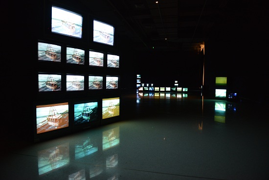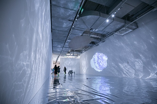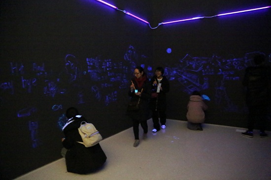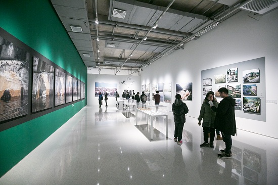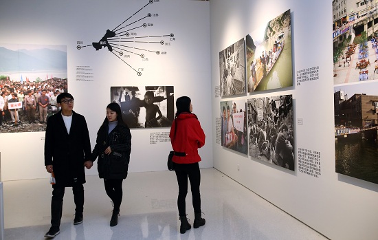 展出的几十件作品以互相渗透的方式在不同展厅中交错呈现,结合摄影、影像、装置、互动空间等多个领域的艺术形式,沿着长江流域、走访相关致力于乡土文化研究的学者、音乐人、当代艺术家等进行深入互动,展开地域文化生态的话题探讨和艺术实践,给观者带来了多重的视觉和情感体验。在这里你不仅可以看到因为长江三峡工程而做出改变的人群和村落,也可以看到他们原本“纤夫”的生存状态,还可以看到《消失的佛像》。在类似大影院的展厅了,感受木心《从前慢》的节奏,在互动作品中画下自己有关长江的图谱。
