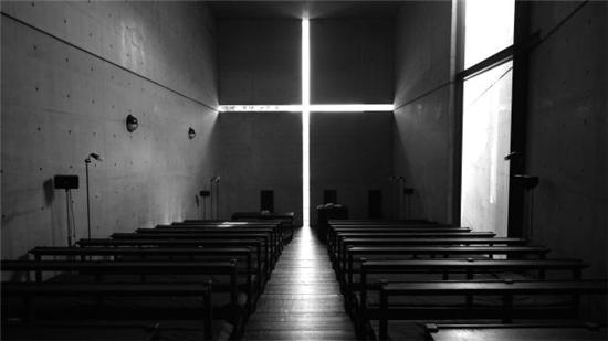 教堂内外部以毫无人工装饰的混凝土材料为主,十字形分割的正面墙壁根据时间变化透出自然光影,形成著名的“光的十字架”,地面向牧师讲台处呈阶梯状下降,仪式感随之递进。观众缓缓走进教堂,天地间的夺目光彩从墙体照进人心,神圣与平和在空间中达到完美的平衡。