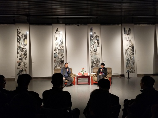 本次活动作为学术交流互动讲座,提问环节将现场气氛推至高潮,互动话题丰富,涉及书画创作多个层面。姚鸣京院长就观众提出的中国画写生创作、传统继承与抽象表达的关系等问题进行了精彩的回答,其论点深入浅出,语言诙谐生动,妙语连珠,列举了很多创作的事例加以阐述,有关题款与印章的布局安排、笔墨的运用和相生关系等方面的回答令在座的书画爱好者们受益匪浅。