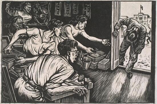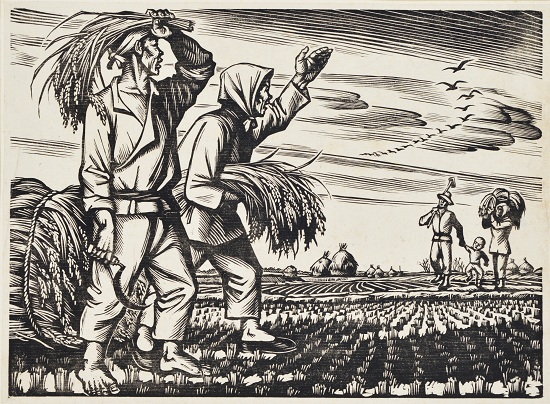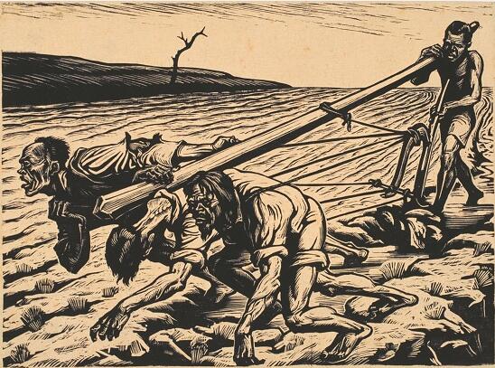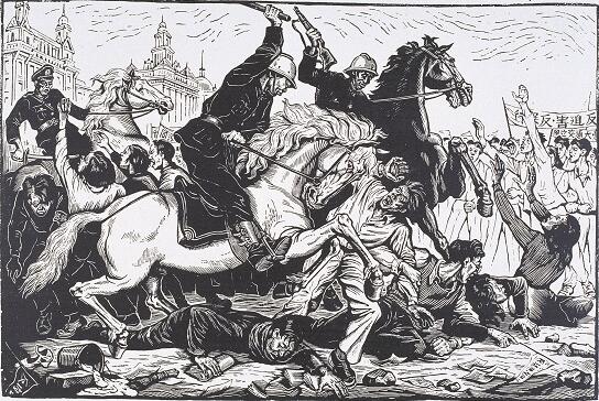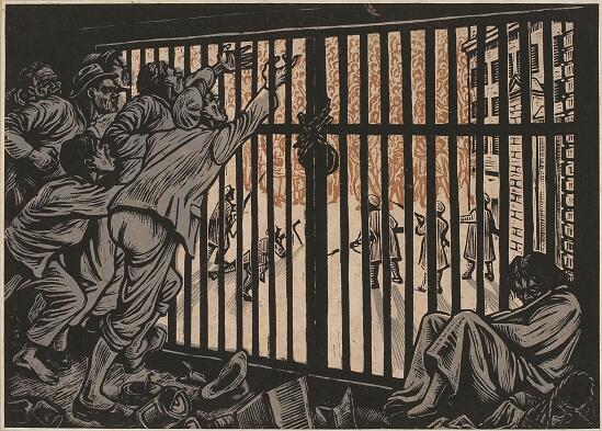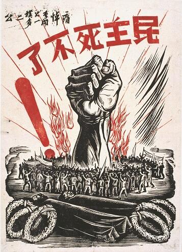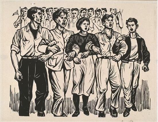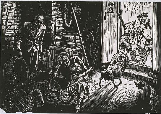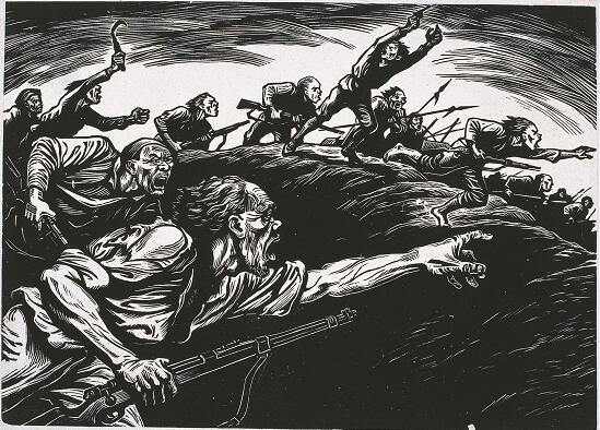 李桦 《怒吼吧·中国!》1938年 27.5×18.7cm 黑白木刻 中央美术学院美术馆藏