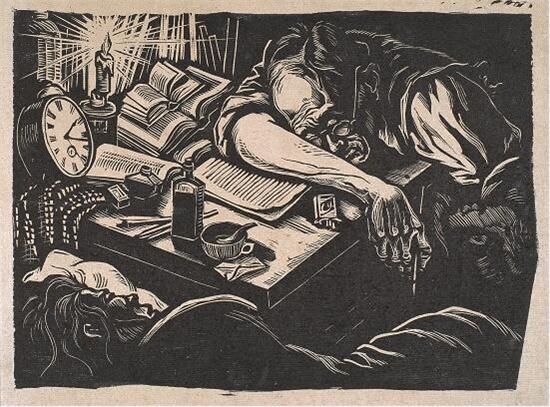 毋庸置疑,在近现代美术发展史上,李桦是少见的几位实践、理论与教学样样精通的艺术家之一。创作方面,李桦留下《怒吼吧,中国!》、《怒潮》组画、《天桥人物》等针砭时弊的经典佳作;理论建设上,李桦不仅为《中国大百科全书》撰写“版画”词条,并直接参与了中国现代“版画”概念的建构,其生前撰写的美术理论文章更是多达一千余篇。因此,我们将李桦定义为一种“木刻作家”身份,既符合他以刀作笔、刀笔兼得的独特气质,更符合我们对其艺术作者论的美学创作原则的认知。本单元从艺术家李桦各个时期自我身份认同建构的过程去考察他与作品之间的关系。