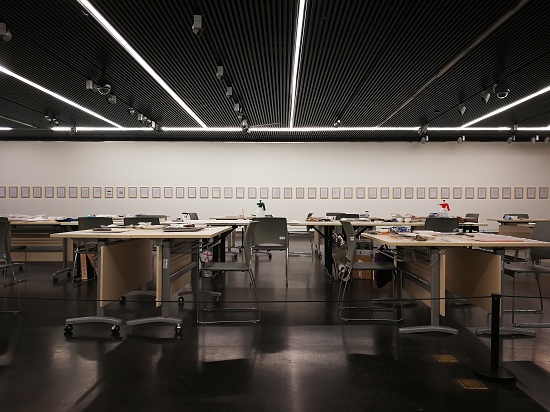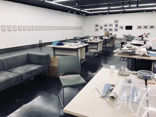 本次展览分为两个单元:文献展、作品展。在文献展单元中,把创作研修班的工作室平移到了展厅,还原了场景原貌,让观众可以近距离观察、感受艺术家们的工作室现场。在作品展单元中,精选了近期年轻艺术家们的水印版画作品。他们反思艺术现状,延展水印版画语言在艺术表达中的应用,赋予水印版画新的活力和空间,完成了不可思议的艺术创作转换。他们的这批精彩作品充分展现了水印语言丰富的可能性,从中足以感受到他们的敏锐与活力,和对所处世界细致入微的观察反馈,同时更能明确地看到他们在艺术之路上解决各自问题,所付出的艰辛工作。