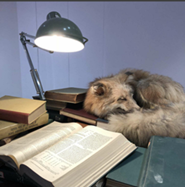 梦经书,狐狸标本 旧书 灯 木 500x80x160cm 2016