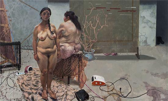 此次郭亚冠展出的作品皆为在校写生系列,人与人之间的关系是他展开思考的落足点。在其笔下,人体不再是柔和或细腻的画风,一具具纯粹肉体下仅存着腐烂与消弭,似一朵即将凋零枯萎的花,衰败的无奈让人产生悲伤的共鸣。想象的,真实的、杂乱的环境,艺术家把有序变成无序、无序变成有序。抛弃传统束缚回归原始状态的生存经验,人类在消失个体与世界合一的绝望痛苦的哀号中获得生的极大快意,“对生命的信任已经消失,生命本身成了问题”,从肉体的腐烂到生命的归属,是郭亚冠作品带来的冲击,也是尼采酒神精神(Dionysian Sprit)式的情绪发泄。在 “醉”与“迷狂”的状态中,他的作品用象征性的人和面孔,将这片复杂的周遭环境为代表的世界用“理想化”的方式呈现在人们面前。