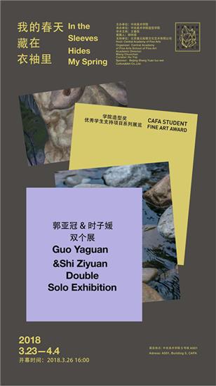 三月末的北京,气温早已回暖,只是持久的阴霾天色尚未能令人沉醉于春之秀色。好在,爱艺术的人从不缺少春天,艺术更能让生活焕发生机。正值中央美院百年校庆之际,2018年3月26日下午4:00,中央美术学院造型学院 学院造型奖 首展:我的春天藏在衣袖里——郭亚冠、时子媛双个展 在中央美术学院5号楼A501开幕。展览由央美人文学院胡祎祺策划,央美美术馆副馆长王春辰担任学术主持。