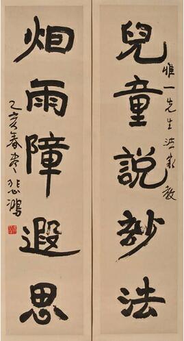五言对联 徐悲鸿 纸本墨笔 111x26cm 1935年 徐悲鸿纪念馆