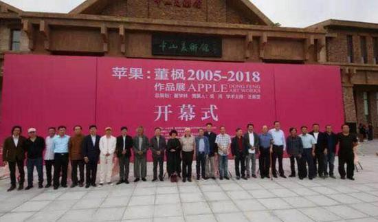 2018年9月28日,《苹果·董枫 2005-2018 作品展》在大连中山美术馆隆重开幕。由当代艺术家王易罡先生主持,出席本次开幕式的领导和嘉宾有:主办单位大连大学校长潘成胜先生,副校长李玉光先生,鲁迅美术学院副院长及云辉先生,大连城市建设集团董事长董学林先生;学术指导单位辽宁省美术家协会副主席喻国伟先生,原中国美术家协会副秘书长、中国书法家协会秘书长戴志祺先生,大连中山美术馆馆长程恩平先生,哲学博士陈嘉映先生,同济大学哲学教授孙周兴先生,黑龙江省美术家协会主席、哈尔滨师范大学美术学院院长赵云龙先生,中国艺术学理论学会副秘书长蒋文博先生,艺术家杨茂源先生,艺术家王音先生,艺术家王永刚先生,艺术家李学峰先生,中央美术学院副院长董长侠先生,中国美术学院继续教育学院院长安滨先生,鲁迅美术学院中国画学院院长赵宝平先生,鲁迅美术学院综合材料系主任黄亚奇先生,鲁迅美术学院雕塑系主任鲍海宁先生,鲁迅美术学院油画系主任牟达器先生,清华大学美术学院雕塑系书记李鹤先生,中国美术学院雕塑系教授翟庆喜先生,东北师范大学美术学院院长李书春先生,东北师范大学美术学院教授姜殿坤先生,哈尔滨师范大学美术学院教授赵龙先生,长春师范大学美术学院教授张华斌先生,辽宁省美术家协会副主席高志华先生,沈阳大学美术学院教授王岩先生,辽宁省群众艺术馆王丹女士,韩国艺术家崔台勋先生,艺术评论家王端廷先生、刘礼宾先生、高岭先生、杭春晓先生,大连外国语学院美术学院院长林则均先生,辽宁师范大学美术学院院长关慧良先生,辽宁省美术家协会副主席、大连美术家协会主席、大连大学美术学院院长石峰先生等。