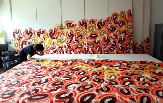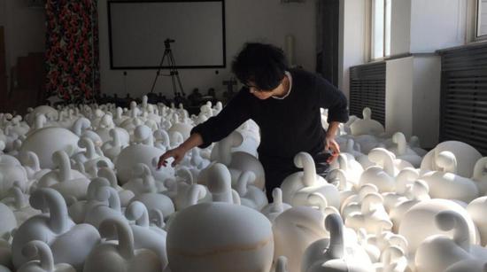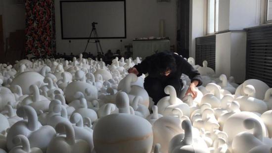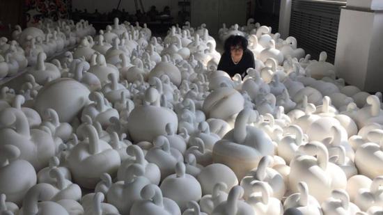 2005 年-2018 年,潜心创作“苹果”系列作品——陶瓷苹果、玻璃钢苹果、纸上绘画苹果万余件