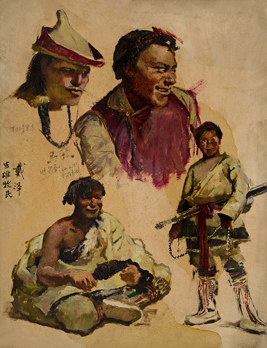 戴泽 当雄牧民-纸本油画-纸本油画-40x52cm-1964