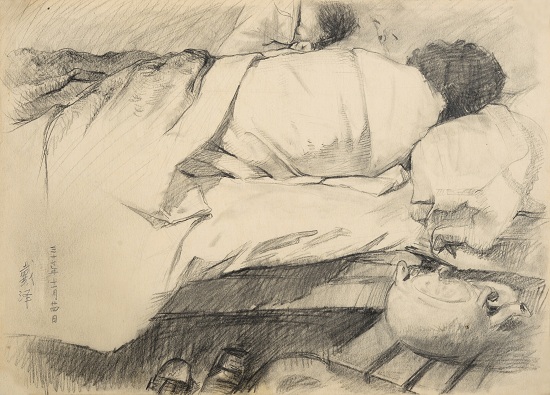 戴泽 睡梦中的母与子-纸本素描-26x36cm-1949