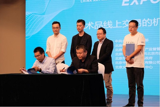 2018年9月29日,由文化旅游部和北京市政府共同主办的“中国艺术品产业博览会”在北京宋庄艺术区盛大开幕。阿里拍卖作为国内第一大线上拍卖平台,受邀发起以“艺术品线上交易的机会和挑战”为主题的行业分论坛。分论坛上,阿里拍卖和荣宝斋在线的代表,分别就艺术品线上交易的议题展开深入阐述,并签署战略合作协议。