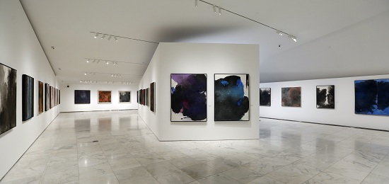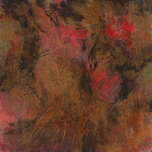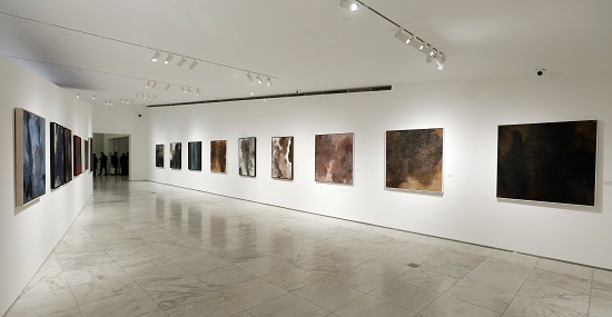 张宝玮先生认为建筑师艺术修养的培养至关重要,作为一个有情怀的教育家和建筑家,他以身示范。张先生年轻时就热爱绘画,十多年西班牙建筑师职业生涯之余,濡染于现代艺术大师的作品,完整的接受了现代艺术的洗礼。回国后因忙于教学、管理和创研工作,而疏于艺术创作,耋耄之年,张宝玮先生重新焕发绘画创作的热情,此番展出的这一系列绘画作品综合了多种材料的实验。张先生的画作是用褶皱的纸张反复浸染到浓密的水墨之中,又将其裱贴于油画布上,以油彩与水墨混合,经过浸、沤、染、积,呈现水“渍”之痕迹。他的创作排斥具体的物象符号,征示了一种复杂难言的文化心境,也是一种对纯净视域的隐喻。观众不需要去“理解”,只需要在不完整的过去和无法完整体验的现在之间,保持一种对于心迹的观照,和一种绚烂之极归于沉默的激情。