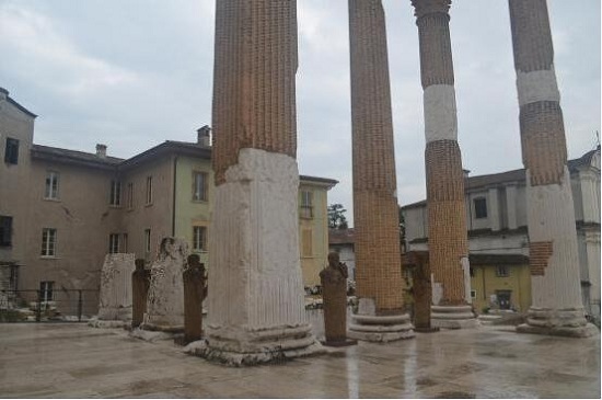 展示在古罗马神殿遗址中的米莫·帕拉迪诺作品