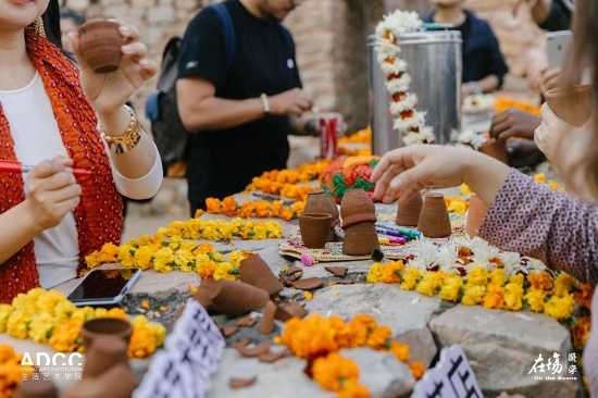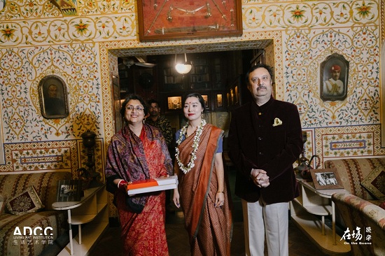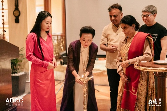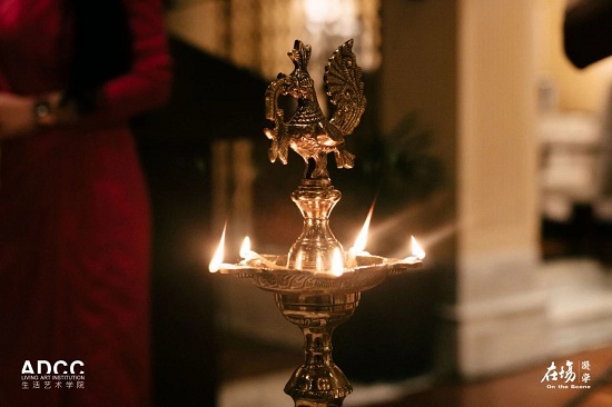 我们永远只能在生活的现场,才会和一个地方建立真正的关系。跟随这个地方,进入它现在的运行轨道,同时也逆向而行,到它的开始去。中印文化艺术访问由印度传统点灯仪式开启,著名设计师、中国室内装饰协会陈设艺术专业委员会(ADCC)执行主任梁建国先生,印度国家古籍管理局(NMA)主席Susmita Pande教授,Topline全球业务主席韩燕女士,ADCC生活艺术学院执行院长汪莎,印度社会人士Vikrant Kumar Sharma先生,行程导师Sarfaraz Siddiqui先生一起将蜡烛点燃,中印文化艺术访问正式开始。