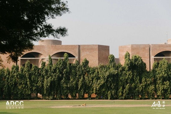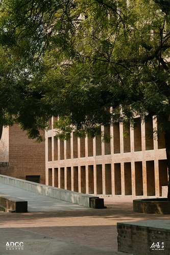 极爱用砖作建筑材料的路易斯·康利用其在印度这样一个劳动力密集型的经济社会工作的机会,在这个校园的设计上完全以砖为材料,巨大的承重砖墙拔地而起,墙壁各处的环形大开孔体现了无与伦比的砖工技术。穿过这些开孔的光线突出了砖面的纹理,与砖石建筑的永恒的质量相协调,给整个建筑以无限的宁静感。