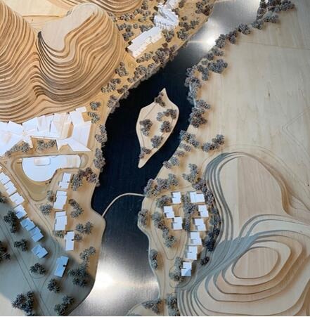 “矩阵”从语义上本是数学概念,行与列的数可以按照某些规则进行运算。以汉森伯盛不同类型风格的项目为脉络,展览分成七个板块:超高层系列、建筑实验、大型综合体项目、生态酒店、教育与乡村、户型研发、新中式建筑,从建筑的社会性维度呈现汉森伯盛的建筑思想、社会实践和企业管理的成就。在2000多个作品中进行梳理、探讨再整合提炼是一件艰巨的工作,而一旦形成就更能靠近每一个部门风格各异的设计思路和社会实践,为“矩阵”这一主题提供了宏观的讨论背景和立场。