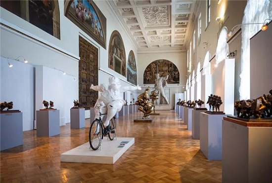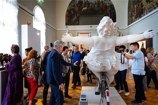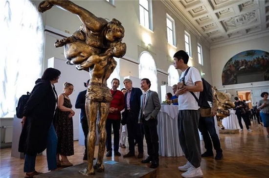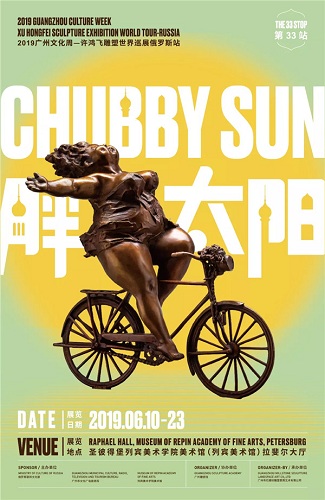6月10日(俄罗斯当地时间),“2019广州文化周—许鸿飞雕塑世界巡展俄罗斯站”在列宾美术学院美术馆正式开幕。恰逢中俄建交 70周年,展览主题命名为“胖太阳”,将太阳譬喻许鸿飞的经典雕塑形象“肥女”,旨在用丰满灵动、幽默诙谐的作品语言,邀俄罗斯民众一起感受中国新时代积极向上的发展力量。