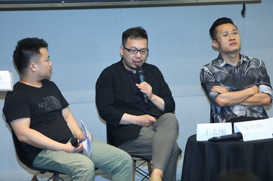 从左至右:首届数字绘画实验艺术征集展执行策展人王志刚、著名艺术批评家、策展人夏可君博士、著名艺术批评家、策展人段君博士