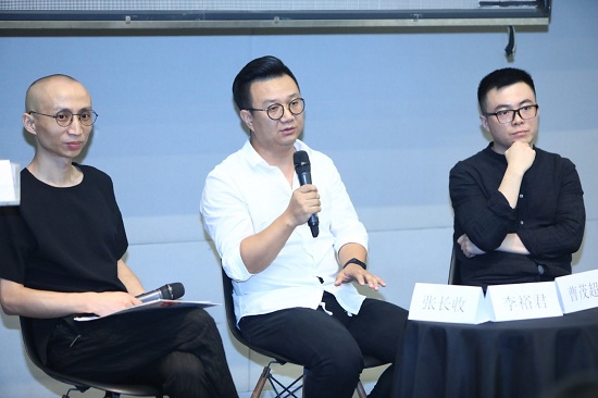从左至右:首届数字绘画实验艺术征集展执行策展人张长收、不同艺见艺术中心执行馆长、策展人李裕君,白盒子艺术馆副馆长、策展人曹茂超