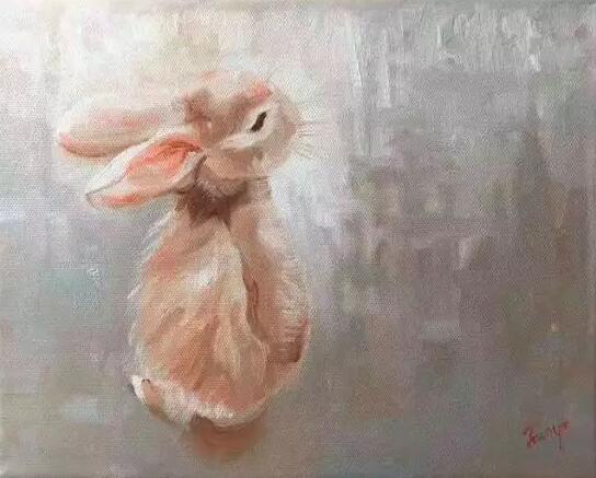 左玉 怀揣希望的兔子 布面油画 30x40cm 2017