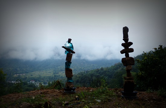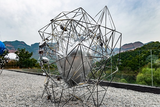 作品《天界·人》利用东太行群山环绕的自然景观,将作品置于大的环境背景之中,使之与周围的群峰峡谷产生对话,并在对话的艺术语境中产生延展性思考。