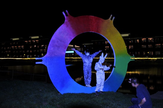 “架上”由当初行为艺术的装置道具延伸为景区的景观装置,这不得不说,艺术的外延和功能性是可以多维度切换的。对于艺术业内人生来说,架上一词的所指再明确不过,当初的行为作品也加以解读过,不再赘述。倒是这个作品由行为艺术的一部分成为今天独立的景观装置,这种形式转换和功能改变,恰恰是艺术家应该深思和加以发展的方面,打开思路,艺术就将会有更多不一样的精彩。