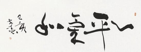 06-2.材料:水墨宣纸。尺寸:18X46cm。年代2019年。释文:心平氣和。己亥克讓。鈐印:日日新,寇氏。