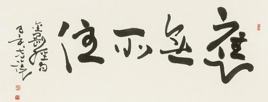 材料:水墨宣纸。尺寸:34X69cm。年代:2019年。释文:应无所住。《金刚经》句。