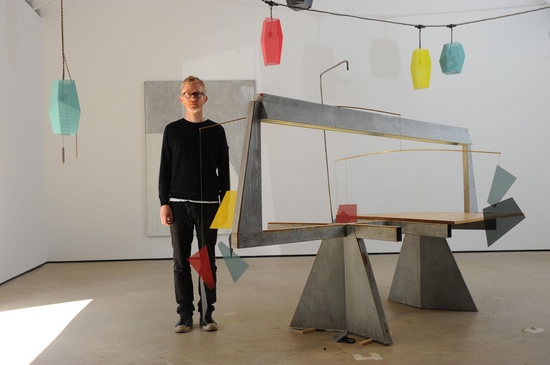 装置作品局部。几何线条加上简单的颜色,是其作品的特色