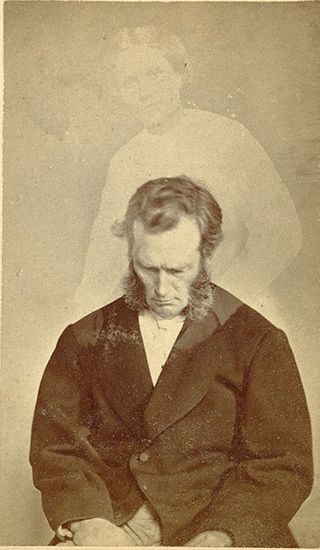 维多利亚时代的人们常常期望看到死者的亡灵。霍乱、结核病和其他日常杀手频频侵袭每一户家庭。招灵仪式频繁举办,让在世之人有机会和逝去的亲人交流。而所谓的“灵魂摄影师”号称可以拍摄到房内的存在光谱。而今人们不再会把这类照片当真,大都会博物馆里展览的“灵魂摄影”明显是双重曝光的结果。而对那个年代数以千计的人们来说,这样的影像曾经那么真实,并感人至怀。